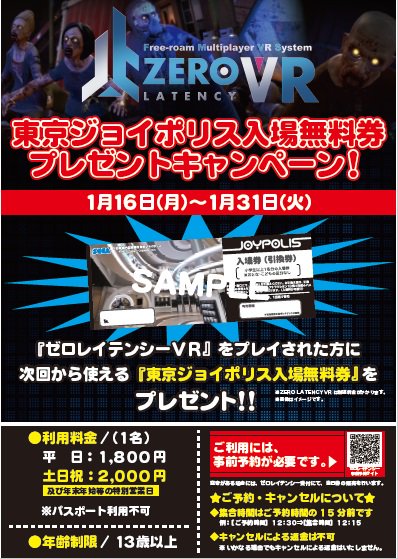 東京ジョイポリス Pa Twitter おはポリー 大人気vrコンテンツ ゼロ レインテンシー Vr ๑ ๑ 本日は当日枠があるポリよ あ 今日はバイオハザード7 の発売日ポリ O アトラクションも大人気ポリよ ジョイポリ周年 Vr バイオハザード